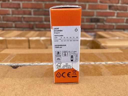 La source lumineuse avec culot E14 a une puissance de 7 watts et fonctionne sur une tension de 220-240 volts. La lampe délivre 21 lumens de lumière avec une température de couleur de 2300 Kelvin, ce qui fournit une lumière blanche chaude.