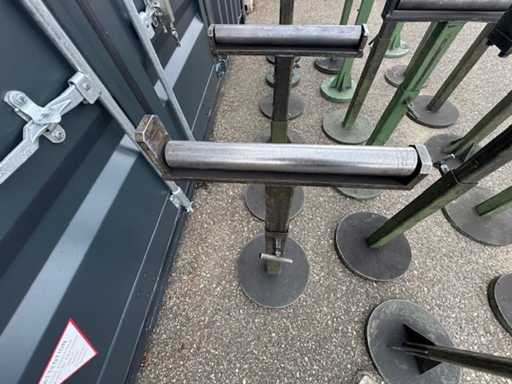 15 supports en acier en morceaux. De différentes tailles. Équipé de : réglage de hauteur et guide de rouleau.