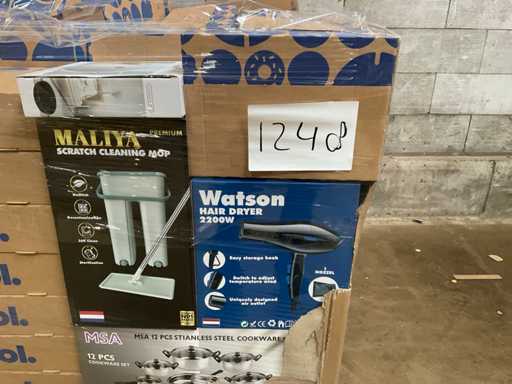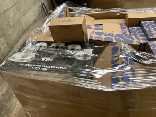 Mélangez une palette composée de divers produits inutilisés provenant de stocks excédentaires.
