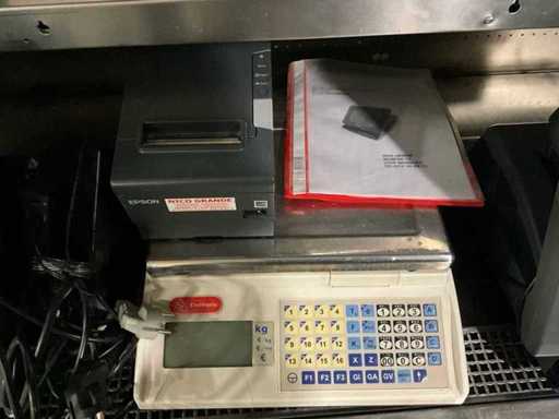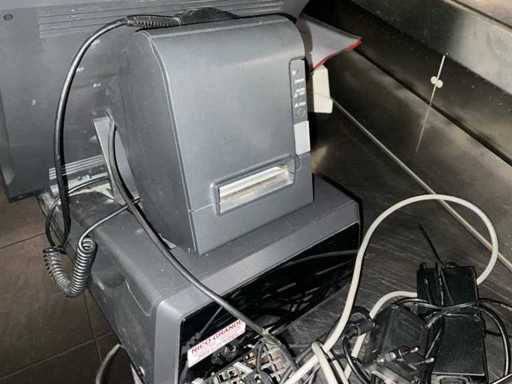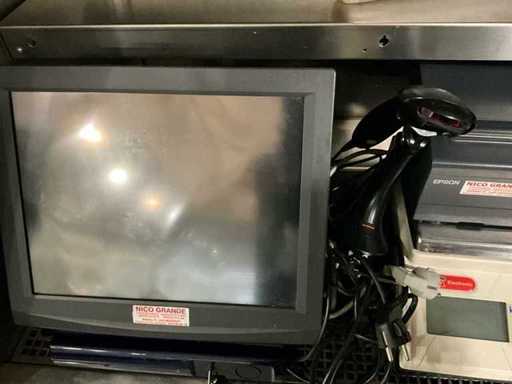 Moniteur tactile, terminal caisse, lecteur de codes-barres, imprimante de reçus (Epson), balance électronique avec clavier, câbles / adaptateurs - Suppléments inclus :
