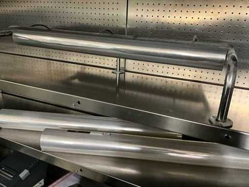 Machine professionnelle d’emballage / machine à sceller pour film en cellophane, 2 rouleaux de film + 2 boîtes et une boîte presque complète de rouleaux pour caisse enregistreuse