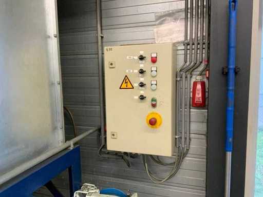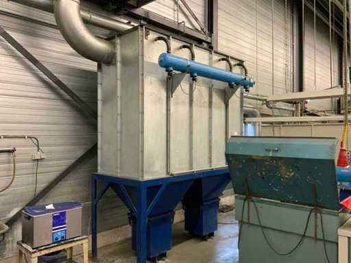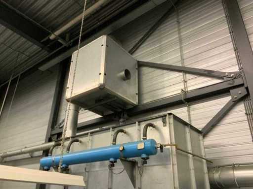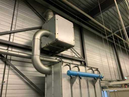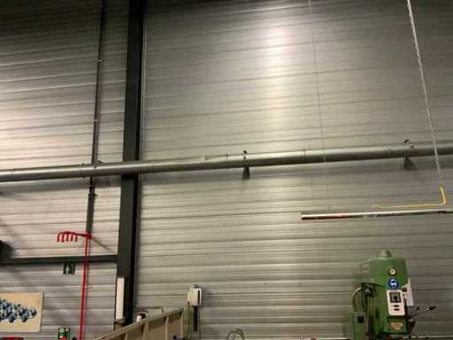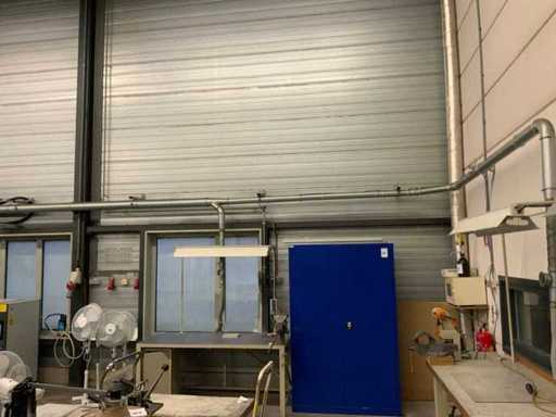 Le système d’extraction comprend 2 unités, dont une est fixée au mur à une hauteur d’environ 3,5 mètres, ainsi que diverses tuyauteries réparties dans l’atelier.
