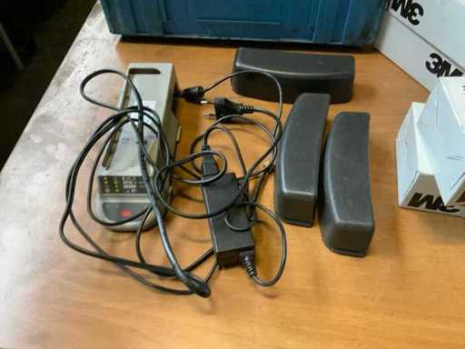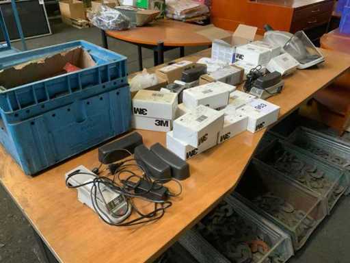 Avec diverses batteries, chargeurs, filtres et autres accessoires