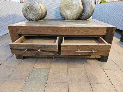 Table basse en teck massif avec 2 tiroirs - Pos. 73