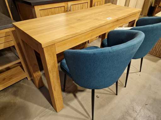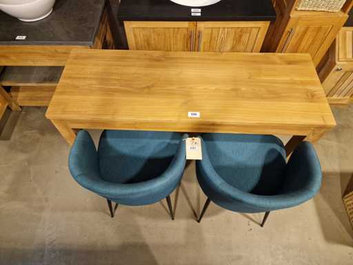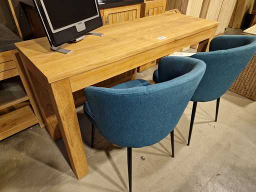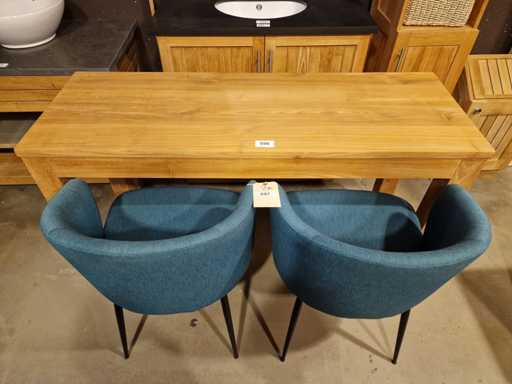 Table de bureau en teck diamant 140 x 50 cm Naturelle droite avec pieds blocs