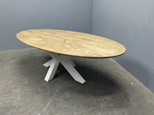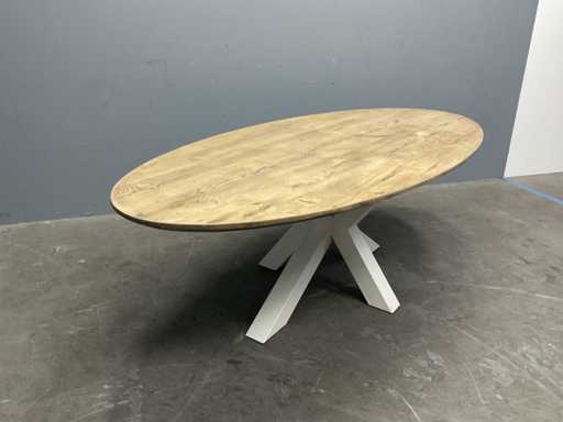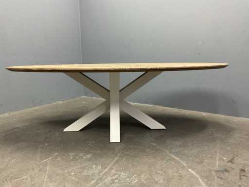 Table de salle à manger ovale décalée en chêne 240 cm avec base en araignée