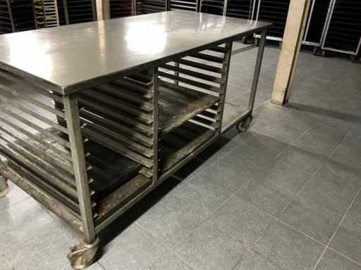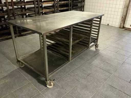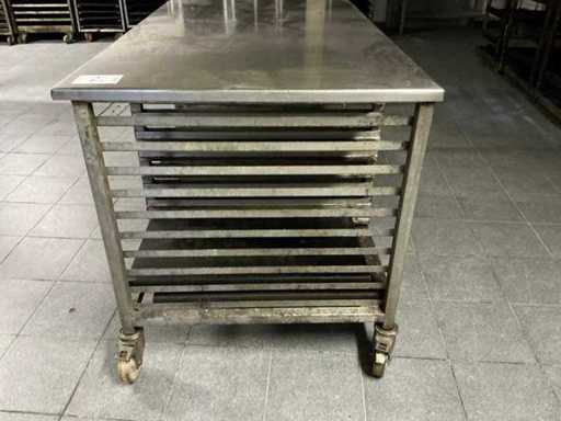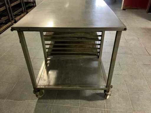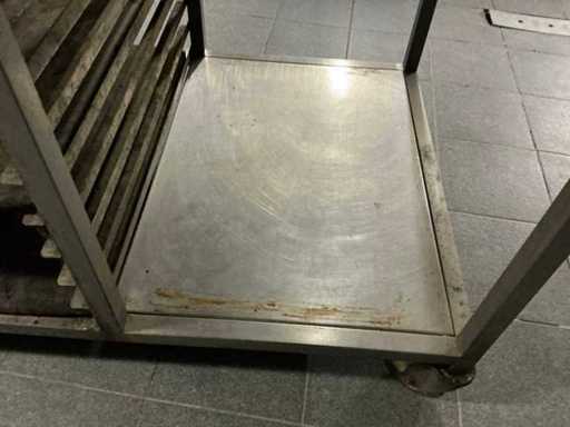 Avec sous-couche ; équipée de 4 roues pivotantes, dont 2 avec freins ; avec ouvre-boîte