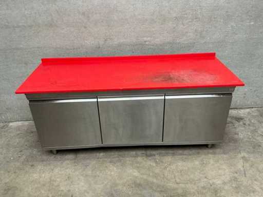 Table de découpe en acier inoxydable avec dessus en plastique, 3 tiroirs profonds et bord surélevé