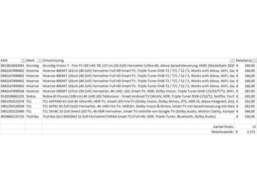 Téléviseurs à palette Retour de marchandises - 11 articles