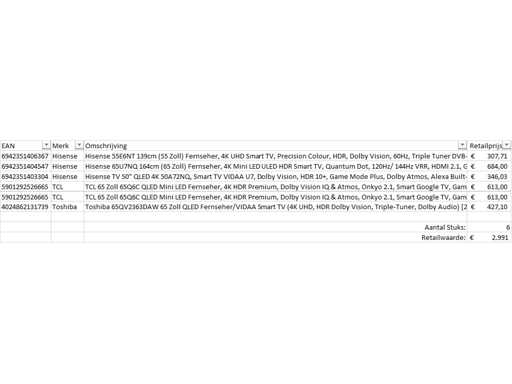 Téléviseurs à palettes Retour de marchandises - 6 articles
