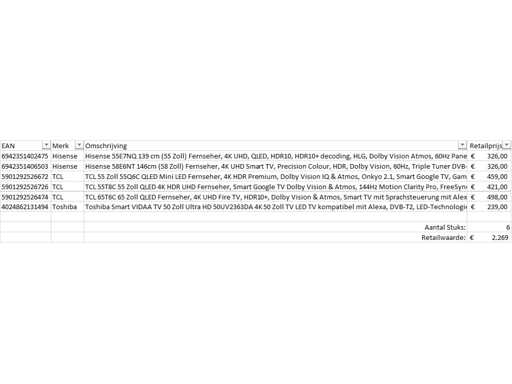Téléviseurs à palettes Retour de marchandises - 6 articles