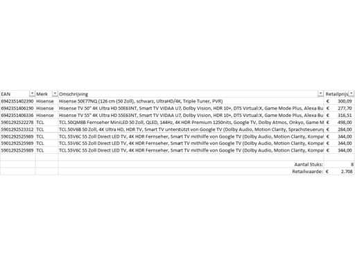 Téléviseurs en palette Retour de marchandises - 8 articles