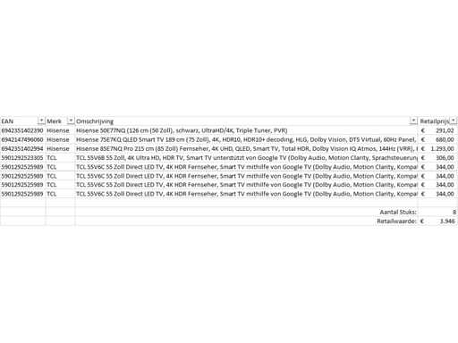 - Pallet Retourgoederen - Televisies