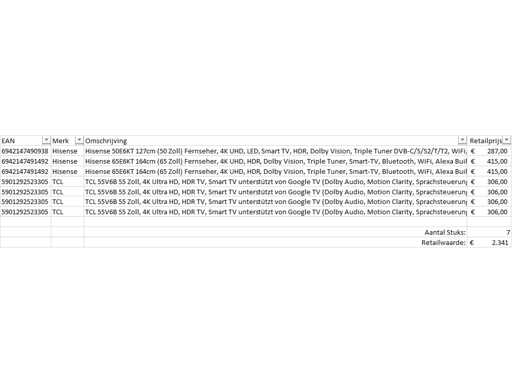 Téléviseurs palettes Retour de marchandises - 7 articles