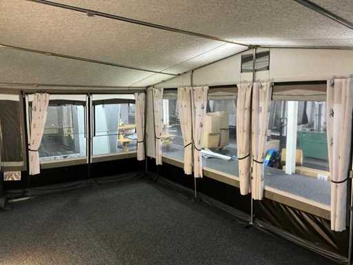 Circonférence : 31, 978-1001 cm, profondeur de l’auvent : 280 cm, matériau du toit : TenCate Residential 260 grammes, matériau mural : TenCate AllSeason 240 grammes, cadre : acier Ø 28x1 mm, herbe artificielle incluse.