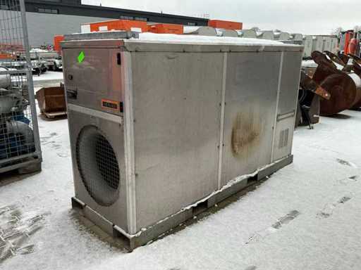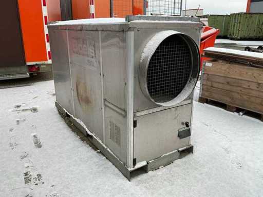 chauffage et ventilation ; un boîtier en acier inoxydable ; panneaux latéraux amovibles ; au fioul / diesel alimenté ; connexion externe du réservoir de carburant ; débit volumique de 12 000 m3/heure ; diamètre de sortie d’air 550 mm ; consommation à charge maximale de 20,9 litres/heure ; heures de lecture 8170 heures ; lever les yeux ; la voiture inférieure équipée de fentes pour fourches élévateurs ; conditions de travail ;