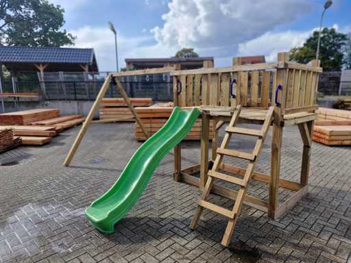Tour de jeu Robusto avec une hauteur de sol de 125 cm. Fabriqué avec des poteaux robustes et une balançoire de 88x88 mm et équipé d’une glissière en plastique couleur verte. Il est livré avec 2 poignées, 4 crochets oscillants, 1 ancre au sol pour ancrer les poteaux oscillants, le matériau de montage et les instructions d’assemblage. Cette tour de jeu est livrée en kit. Dimensions du paquet : 80x50x240cm, 575kg.