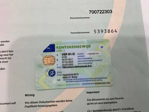 MTM : 2640 kg, certificat d’immatriculation NL disponible, clé présente, signes d’usure, dommages corporels, fenêtre fissurée