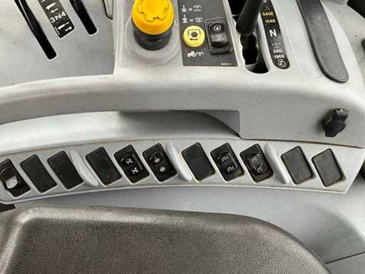 équipée de prises de force 540/540e/1000 tr/min, cabine suspendue, tringlerie, contrôle d’aile, pommeau basculant, feux de travail, tringlerie avant Zuidberg, climatisation