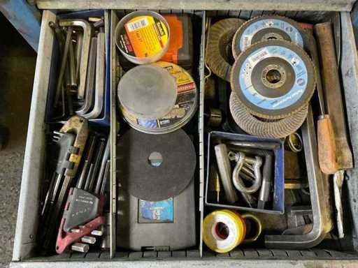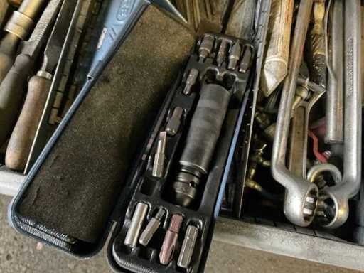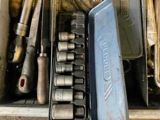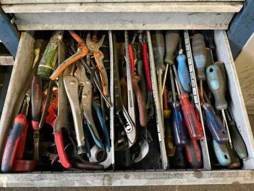 Y compris divers outils, notamment Perceuses, pinces, clés, tournevis, douilles, marteaux.