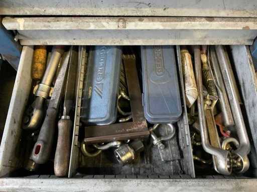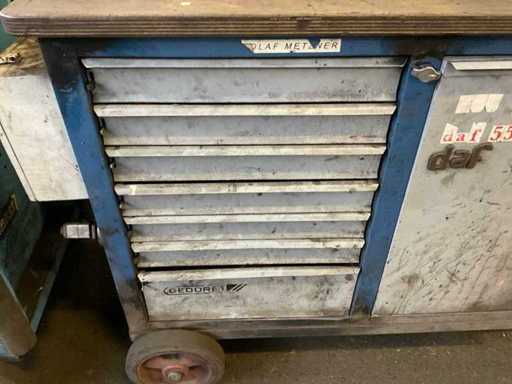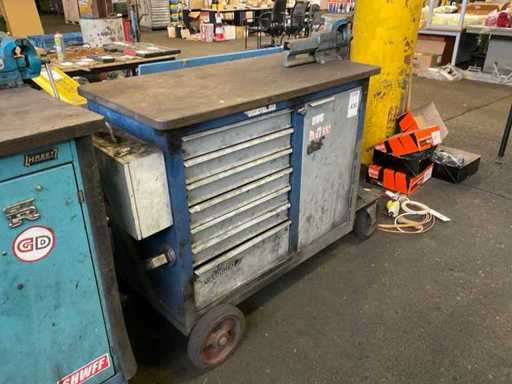 La boîte à outils est équipée d’un chariot et d’un étau auto-construits.