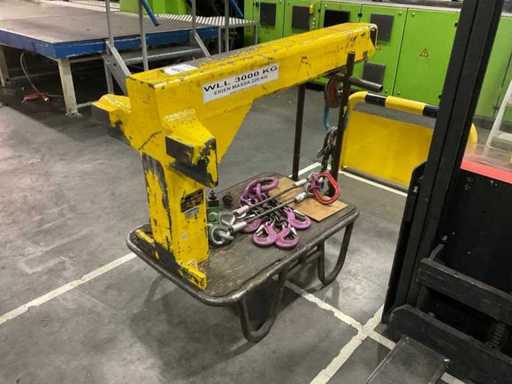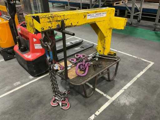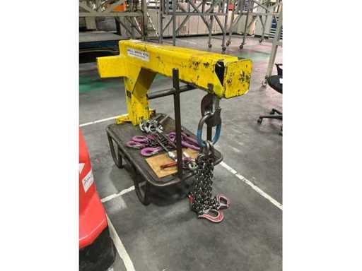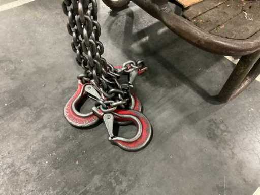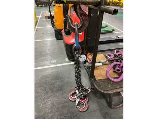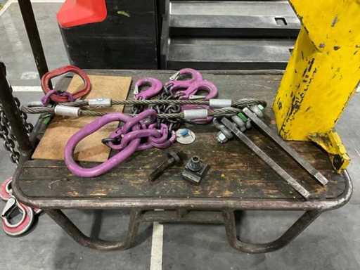 En soutien, équipé de divers équipements de levage, y compris des chaînes de levage à quatre voies et des équipements de verrouillage