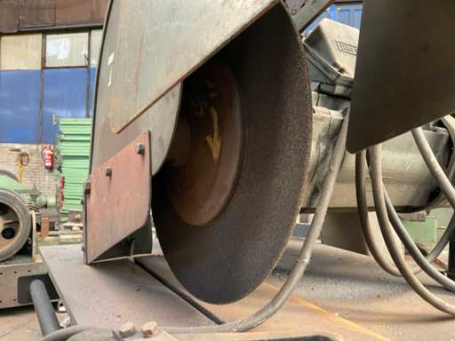 Diamètre de la meule : 450 mm, actionnée au pied.