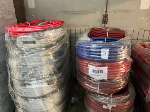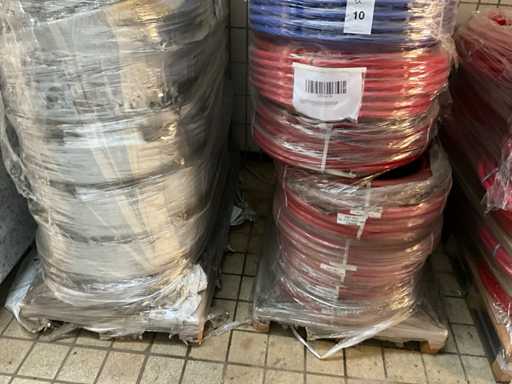 Tuyau Pex avec gaine rouge et bleue rouleau sur 75m, sur 2 palettes.