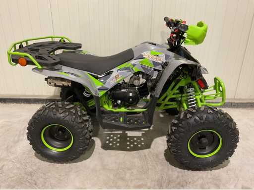 Équipé d’un démarreur électrique ; 4 temps ; 125 cm³ ; freins à disque hydrauliques ; taille du pneu 8" pouce ; 2 clés ; Inutilisé en caisse (dimensions de transport 135x85x65 cm)