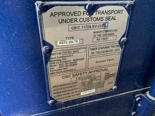 Il s’agit d’un conteneur maritime de 3 mètres utilisé comme unité d’essai, équipé de portes sur deux côtés et d’une fermeture à verrouillage tournois.