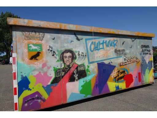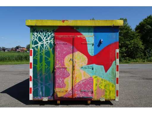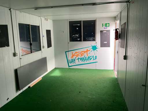 Sur châssis à crochet, 2 portes, carreaux de moquette verts, installation 230 volts
