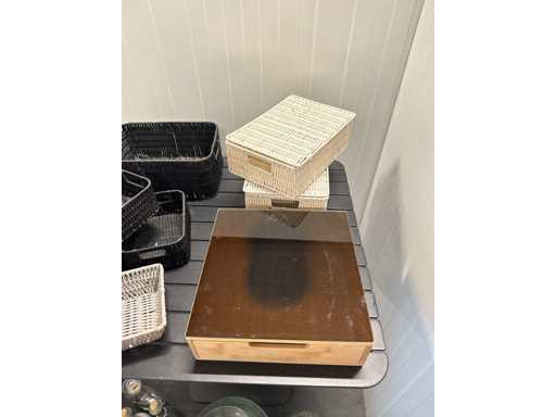 Ustensiles de cuisine, paniers et boîte de rangement