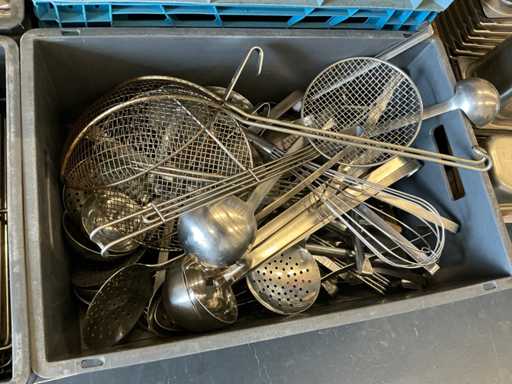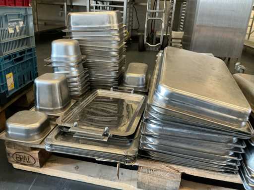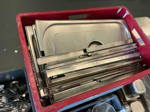 Ustensiles de cuisine pour traiteur, grilles de four, couverts, plats gastronormes en inox