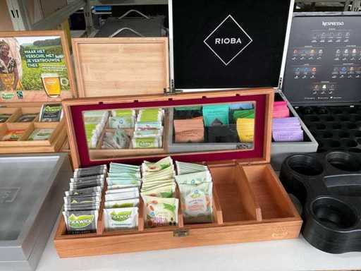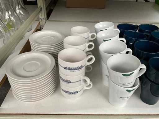 Composée de différentes tasses, tasses et soucoupes, boîtes à thé et autres