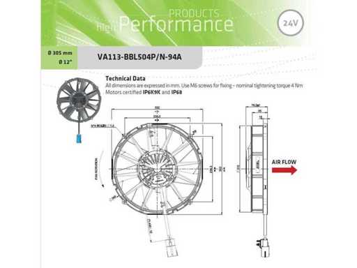 Ventilateur axial SPAL VA113-BBL504P/R/A/N-94A (6x)