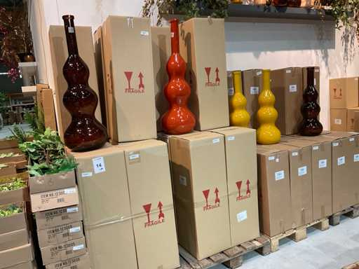 Lot de vases sur 4 palettes, de différentes couleurs et tailles, y compris ø33 cm hauteur env. 100 cm