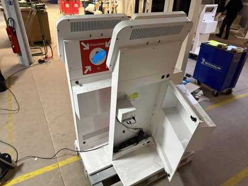 Lot de 3 bornes avec écrans tactiles neufs ViewSonic VSD243-BKA-EV0. Elles sont équipées d’une imprimante ticket, de tout les câbles nécessaires (alimentation, USB, multiprise etc) -