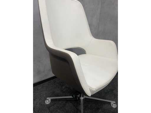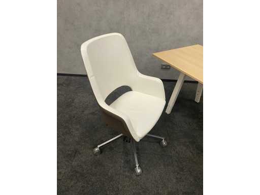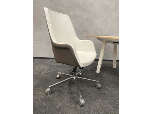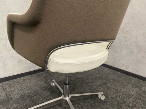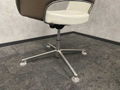 lot composé d’une chaise de bureau TwinForm et d’une chaise de conférence avec revêtement vert/marron et revêtement en cuir blanc + bureau réglable en hauteur Vitra Joyn
