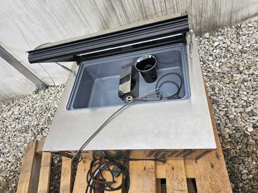 Exécution Vitrine de glaces de table Éclairage LED Le couvercle courbé et s’articulait vers le haut Ouverture du couvercle vers le côté opérateur Capacité : 4 x 5 l Les contenants ne sont pas inclus ! Présentation optimale du produit Réglage de la température via un affichage numérique Qualité Caisse en acier inoxydable AISI 430 de haute qualité Efficacité énergétique extrêmement élevée Extrêmement silencieux Haute stabilité Refroidissement Refroidissement statique Réfrigérant : R290 / 45 g, CFC - sans alcool Fonction de dégivrage automatique Plage de température : -18 °C à -22 °C Connexion Puissance : 220 watts Connexion électrique : 220 - 240 Volt / 1N/PE / 50 Hz Métrique Dimensions extérieures Larg x Pied x Pied : 867 mm x 735 mm x 446 mm