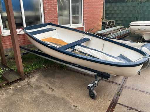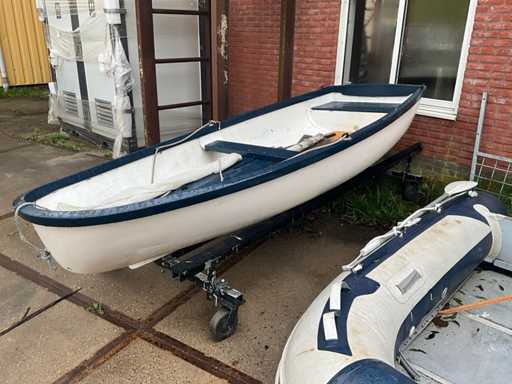 Remorque non incluse ; Voilier en polyester Complètement prêt à naviguer. Longueur 312 cm Largeur 142 cm Fournir: -Mât -Grand-voile -Misaine - Récupération de la quille -Gouvernail -Cordes