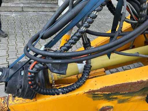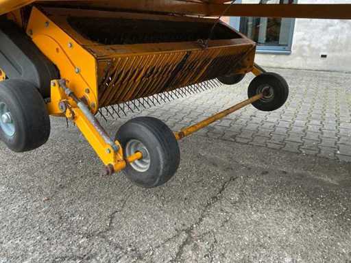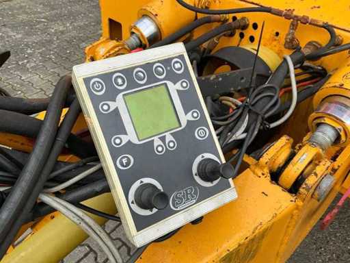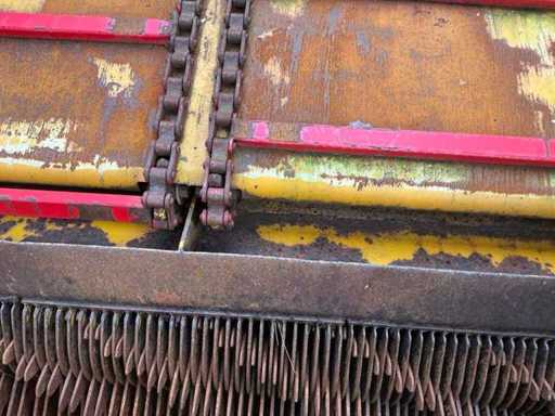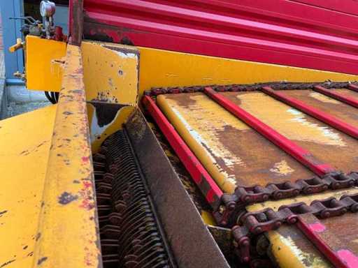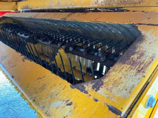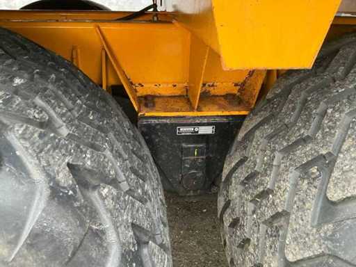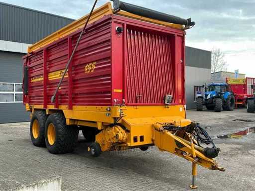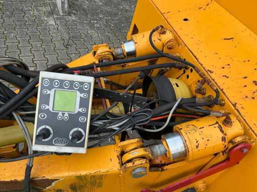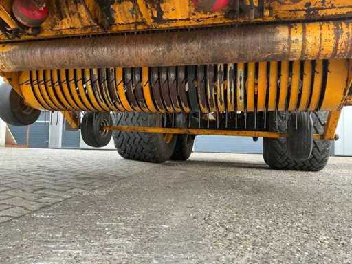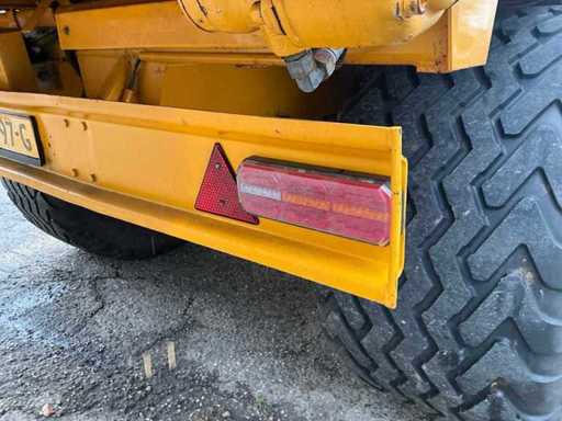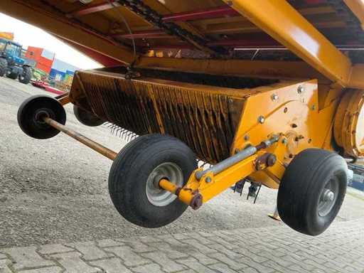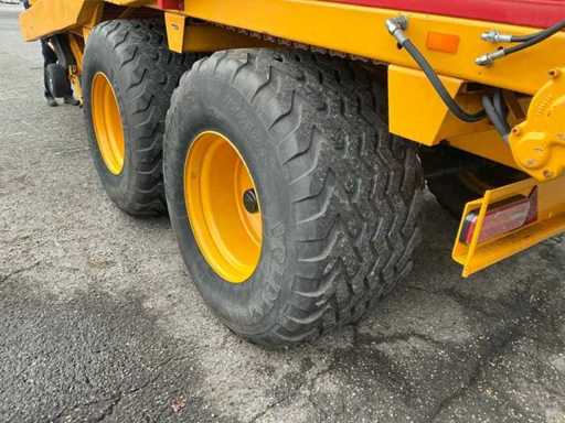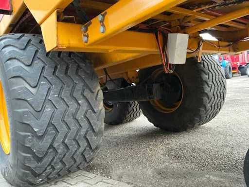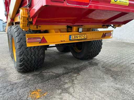 Équipée de rouleaux doseurs, d’un système de couverture de charge, d’un tandem pendule à direction forcée hydraulique, de freins hydrauliques, d’une suspension à barre d’entraînement hydraulique, d’une boîte de contrôle, de pneus Vredestein Flotation Pro