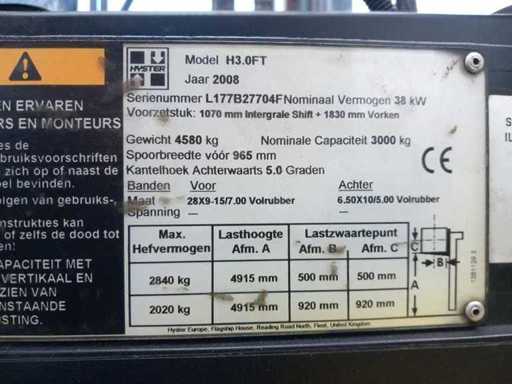 Cabine ; moteur GPL ; 17 532 heures d’exploitation ; Mât triplex ; Hauteur de levage : 4 915 mm ; Hauteur du mât : 2 200 mm