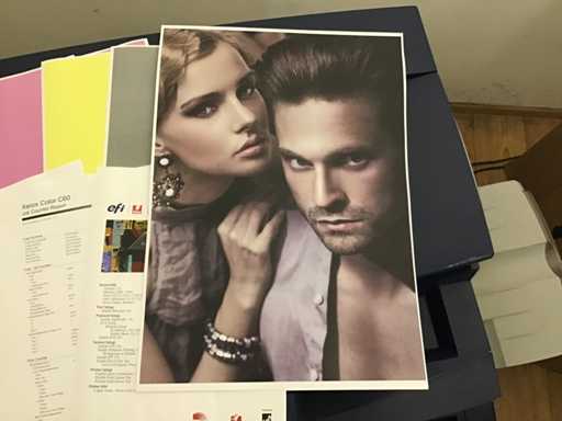 Machine/copieur graphique multifonctionnel A3+ / SRA3 Couleur avec FIERY EX-i C60/70 intégré et plateau de sortie décalé, compteur de 849 869 tirages au total. La machine a été entièrement et professionnellement contrôlée dans l’atelier du vendeur et est en excellent état de fonctionnement avec une image imprimée remarquable !