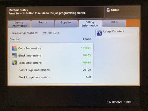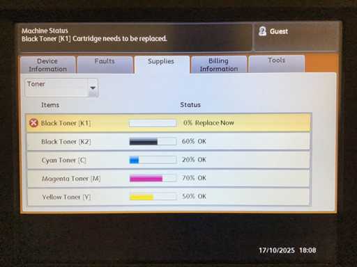 Veuillez consulter les photos jointes pour les niveaux restants de toner et de batterie en pourcentage !