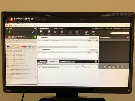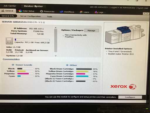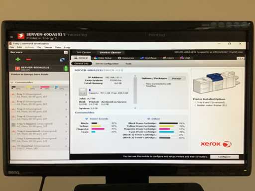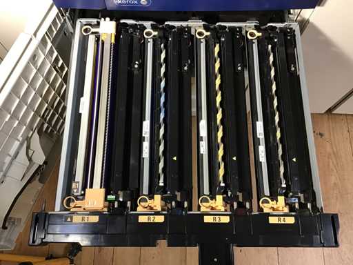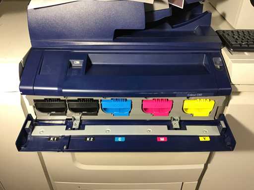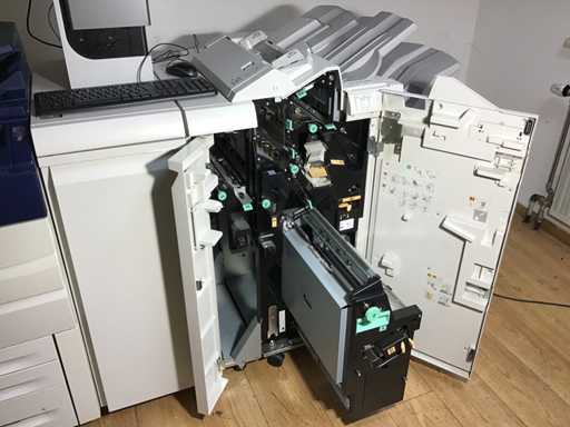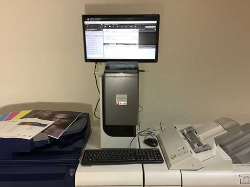Machine/copieuse graphique multifonction A3+ / SRA3 Couleur avec FIERY EX C60/70 externe sous Windows 10 (avec écran, clavier et souris), alimentateur haute capacité A3+/SRA3 avec 2 tiroirs, module d’interface finition avec découronnement et finition de production légère avec module de livret, compteur affichant SEULEMENT 170 486 tirages au total. La machine a été entièrement et professionnellement contrôlée dans l’atelier du vendeur et est en excellent état de fonctionnement avec une image imprimée remarquable !