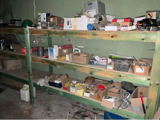 Composé de divers matériaux de fixation, outils manuels, pompe à eau 2x, bouchons isolants, etc.