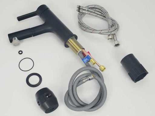 Equipaggiato con: testa estensibile con tubo lungo. Tubi dell'acqua con materiale di collegamento.