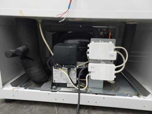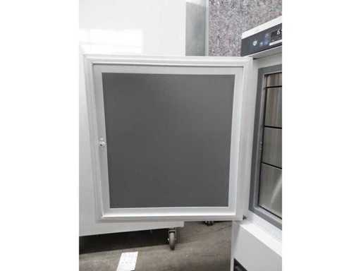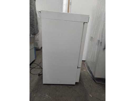 100 kg (netto) 4 piedi (regolabile) Sensore di monitoraggio disponibile. Involucro esterno in lamiera zincata (protezione dalla ruggine), bianco, rivestita a polvere. Interni in alluminio liscio con rivestimento protettivo, porta interna in plastica, igienica, facile da pulire. 3 cassetti in acciaio al cromo-nichel con schermi freddi su rotaie a sfera in acciaio al cromo-nichel a sfera lisce. Dimensioni del cassetto trasparente: