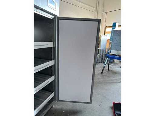 acciaio rivestito a polvere, bianco (materiale resistente alla ruggine e alla corrosione), isolamento in poliuretano, spessore 75 mm Interno in acciaio inox Piedi: