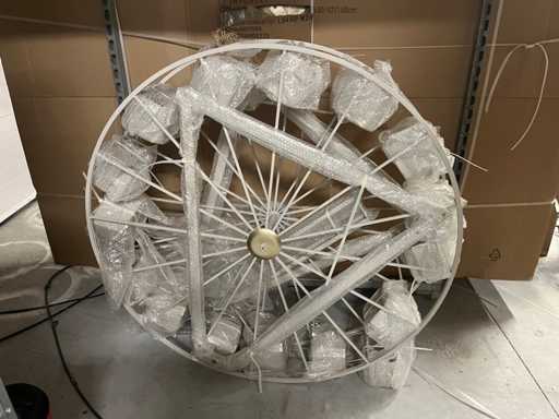 Elegante ruota panoramica decorativa in acciaio di 1,5 m. Struttura stabile e rimovibile, finitura metallica. Ideale per vetrine e gallerie. Prodotto nuovo di zecca.